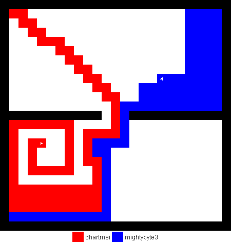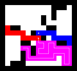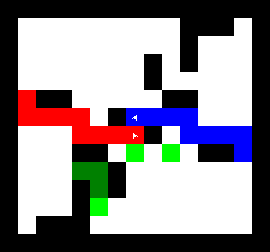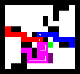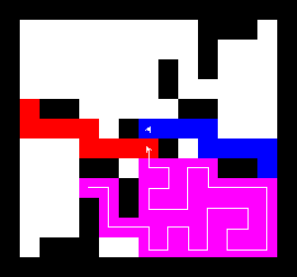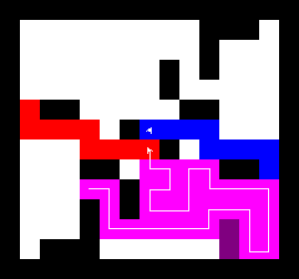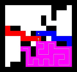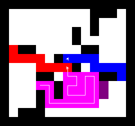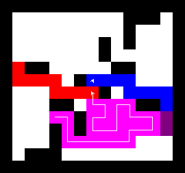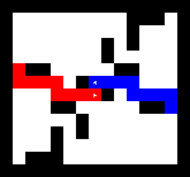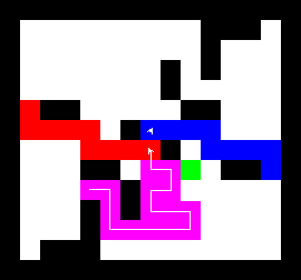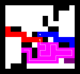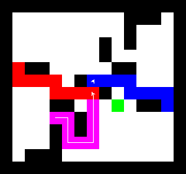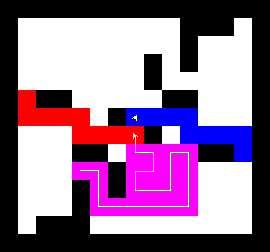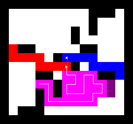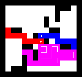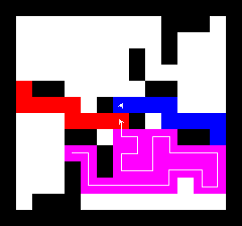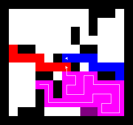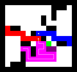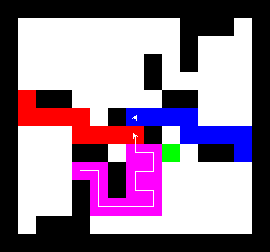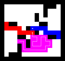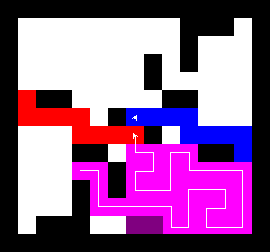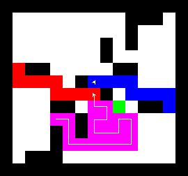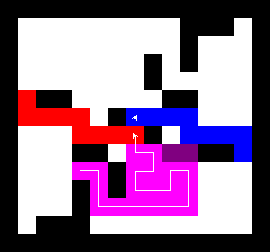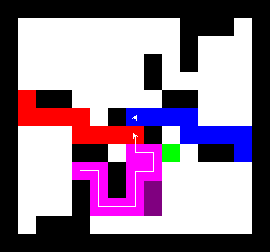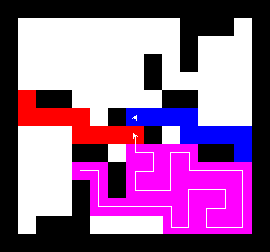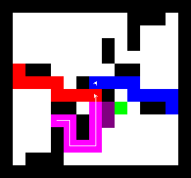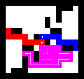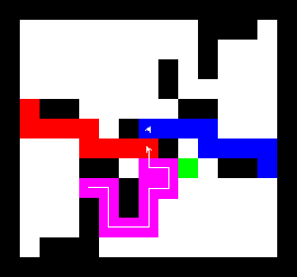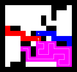 I also wrote a more complex version of the expand function which not only tries to expand into two adjacent free fields along the path, but also finds longer connections between two adjacent free fields. This finds expansions around obstacles. It turned out to be quite a bit slower, though, and it made a difference only on very few maps (where I was isolated in an area with only narrow ways around obstacles). You can view this version here.
